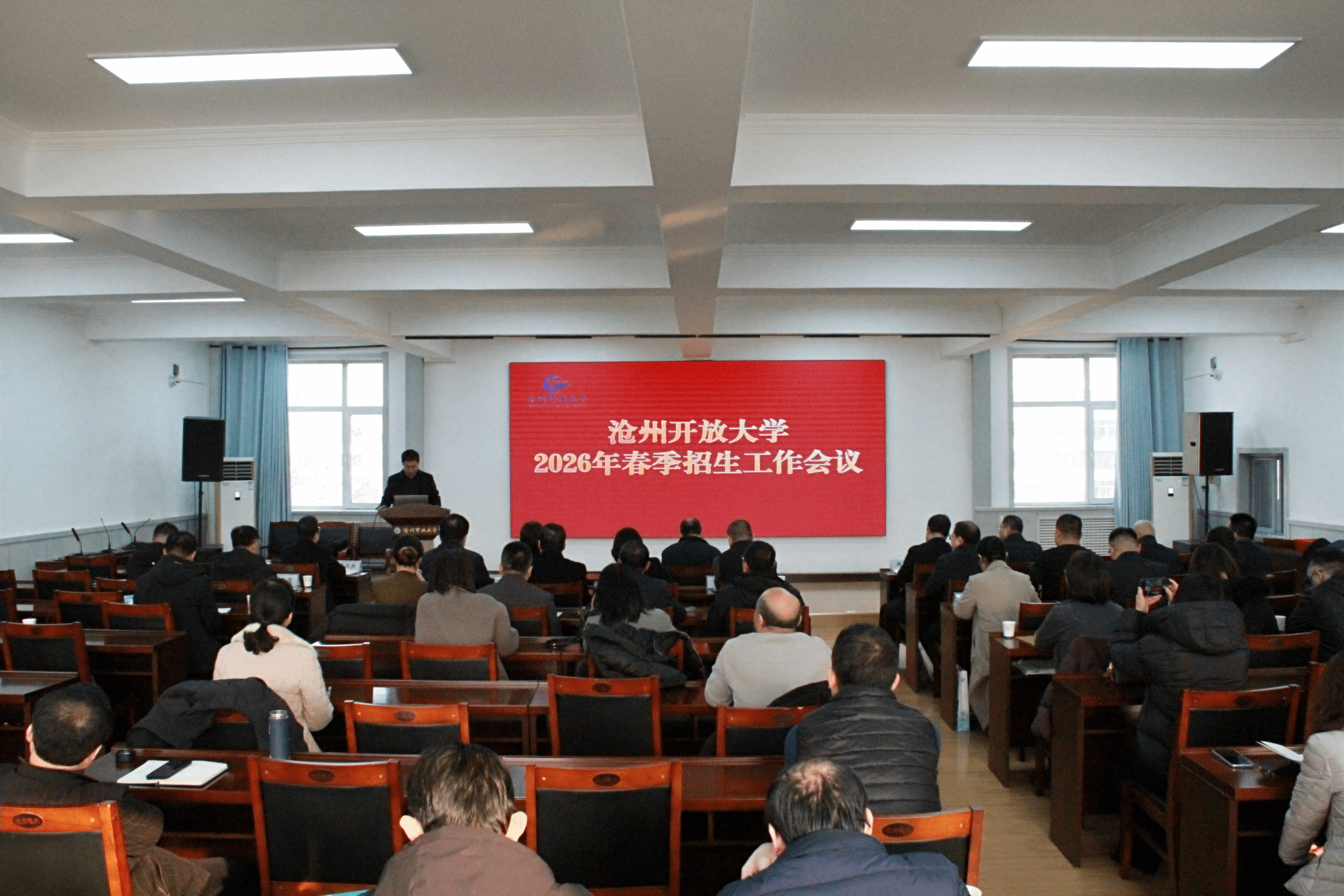 1月6日上午,沧州开放大学召开招生工作会议,全面总结全市开大体系2025年开放教育招生工作,部署2026年春季招生任务。党委书记熊俊杰,党委副书记、校长郝清秀出席会议并讲话,学校党委班子全体成员、副科以上中层干部、各县(市)开放大学校长、招生办主任参加会议。会议由党委委员、副校长刘杰主持。熊俊杰强调,做好2026年春季招生工作:一要提高认识,深刻把握招生工作对体系发展的关键意义,切实增强责任感与紧迫感;二要多措并举,...